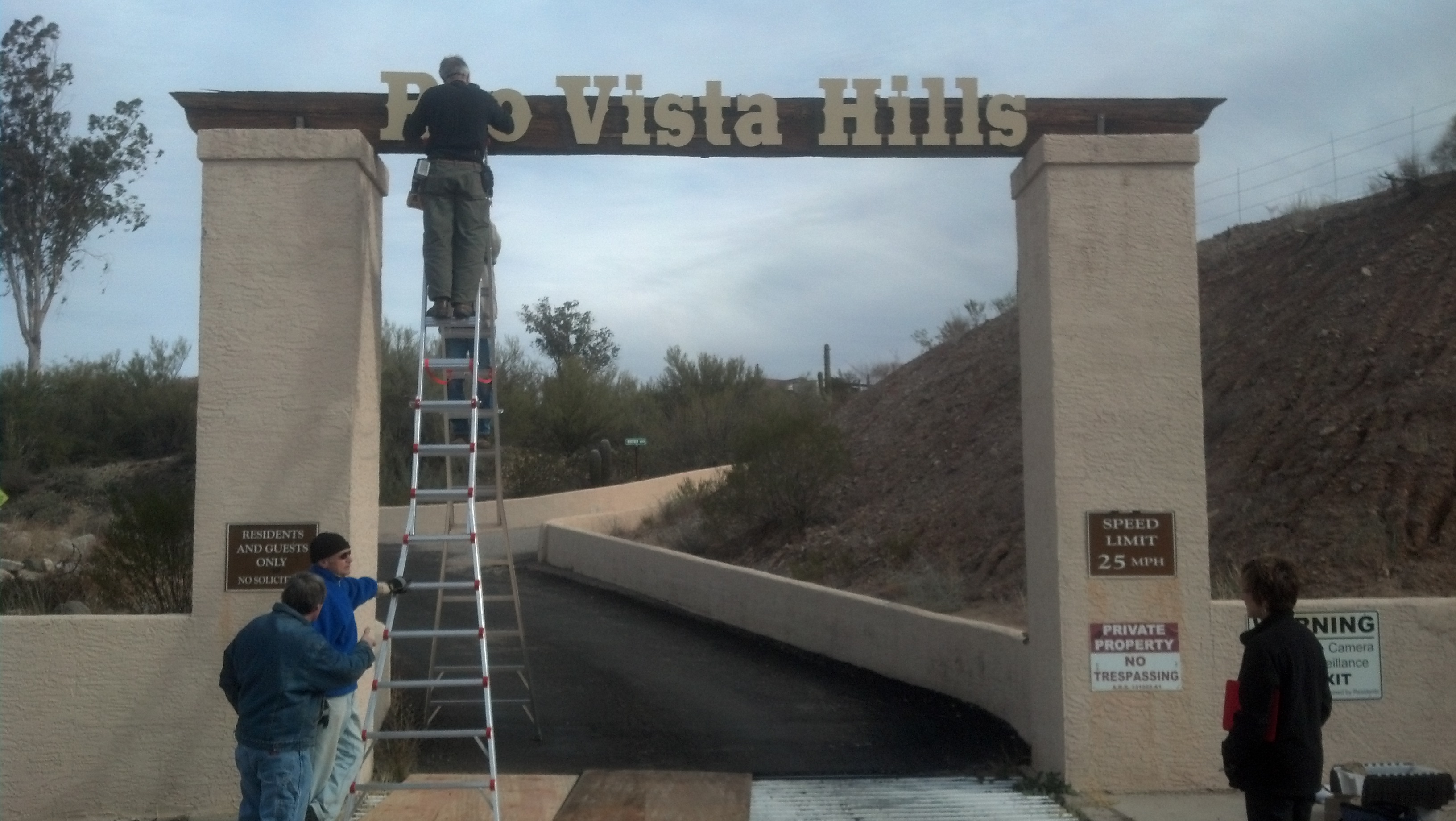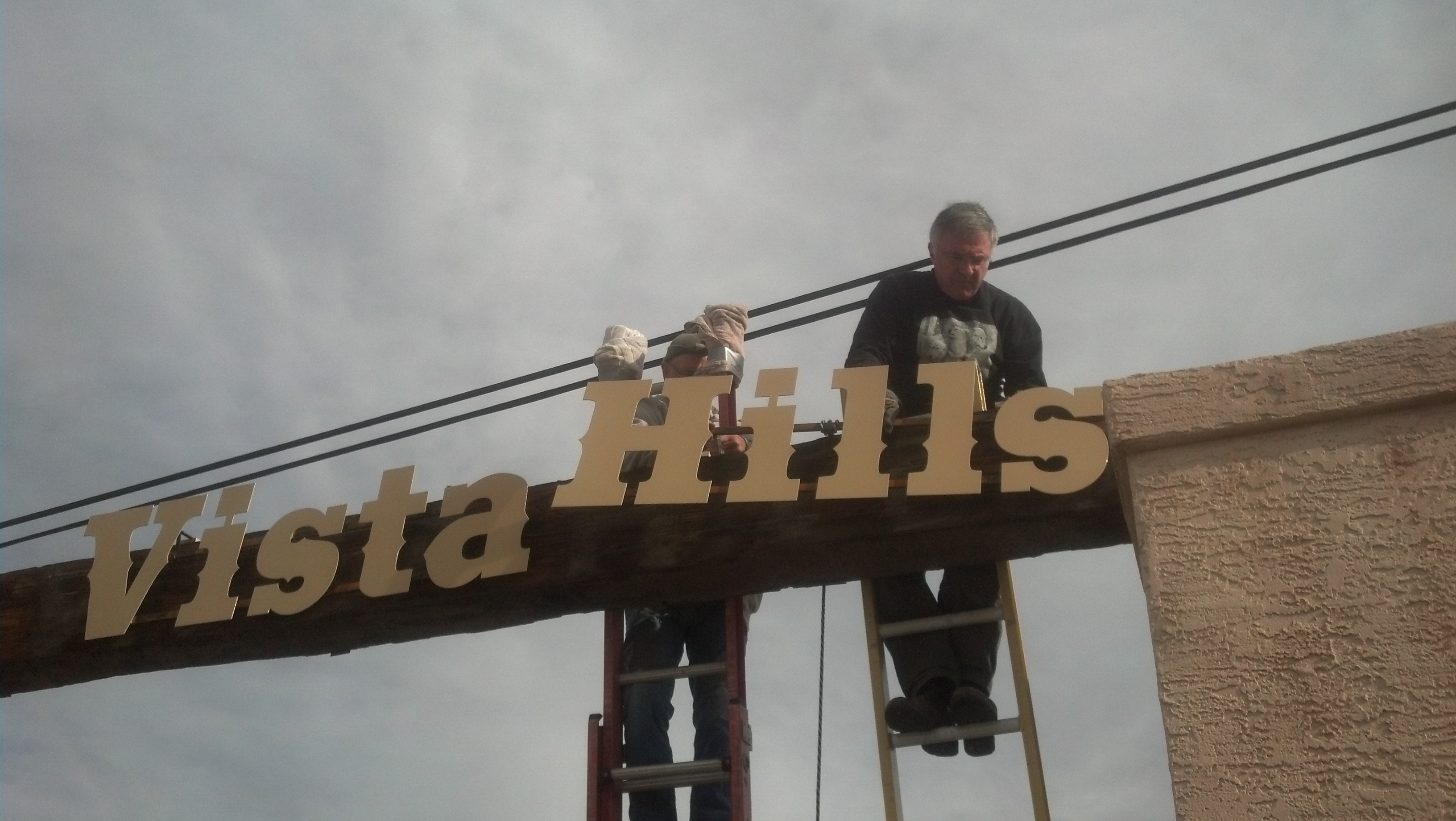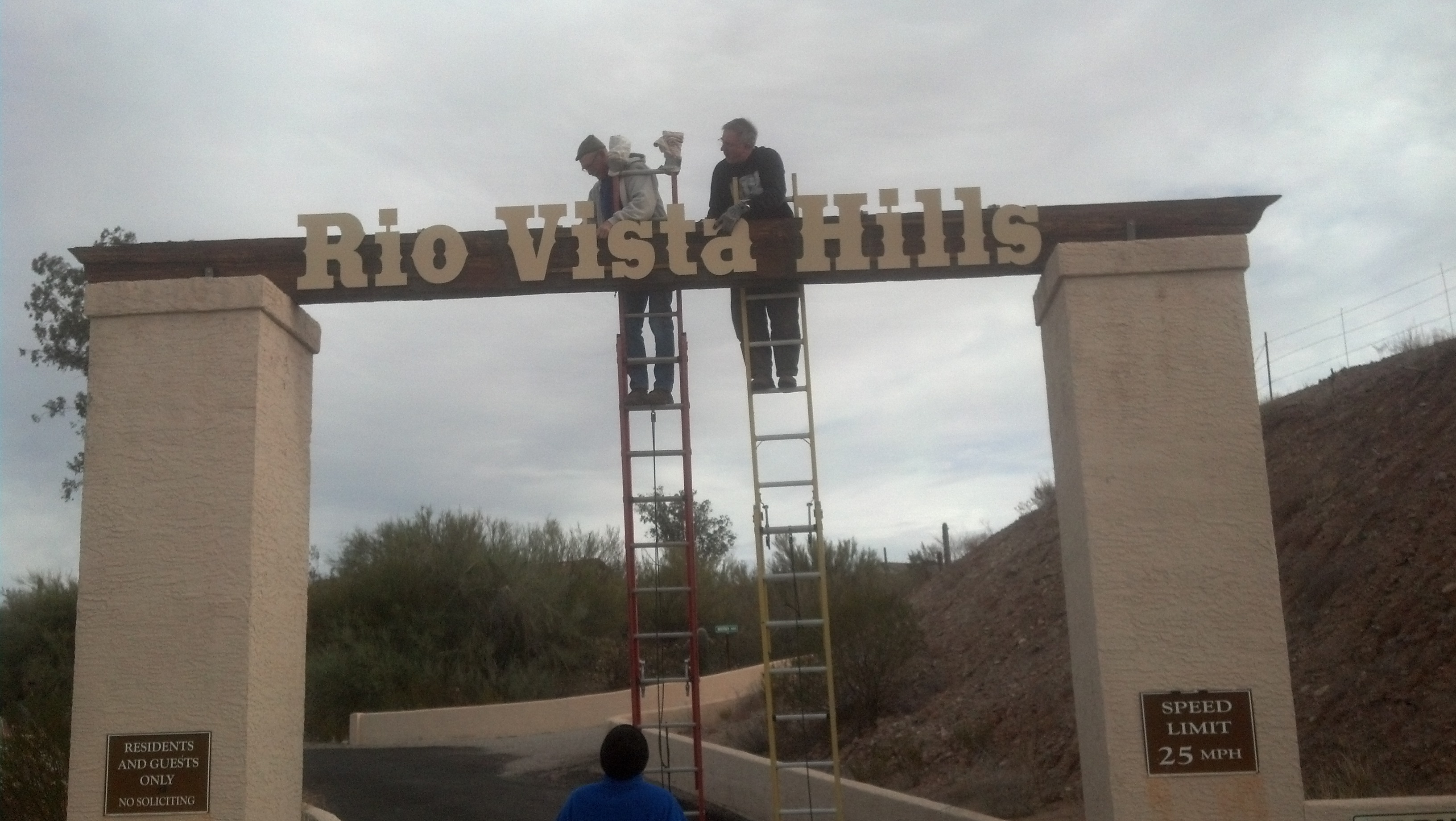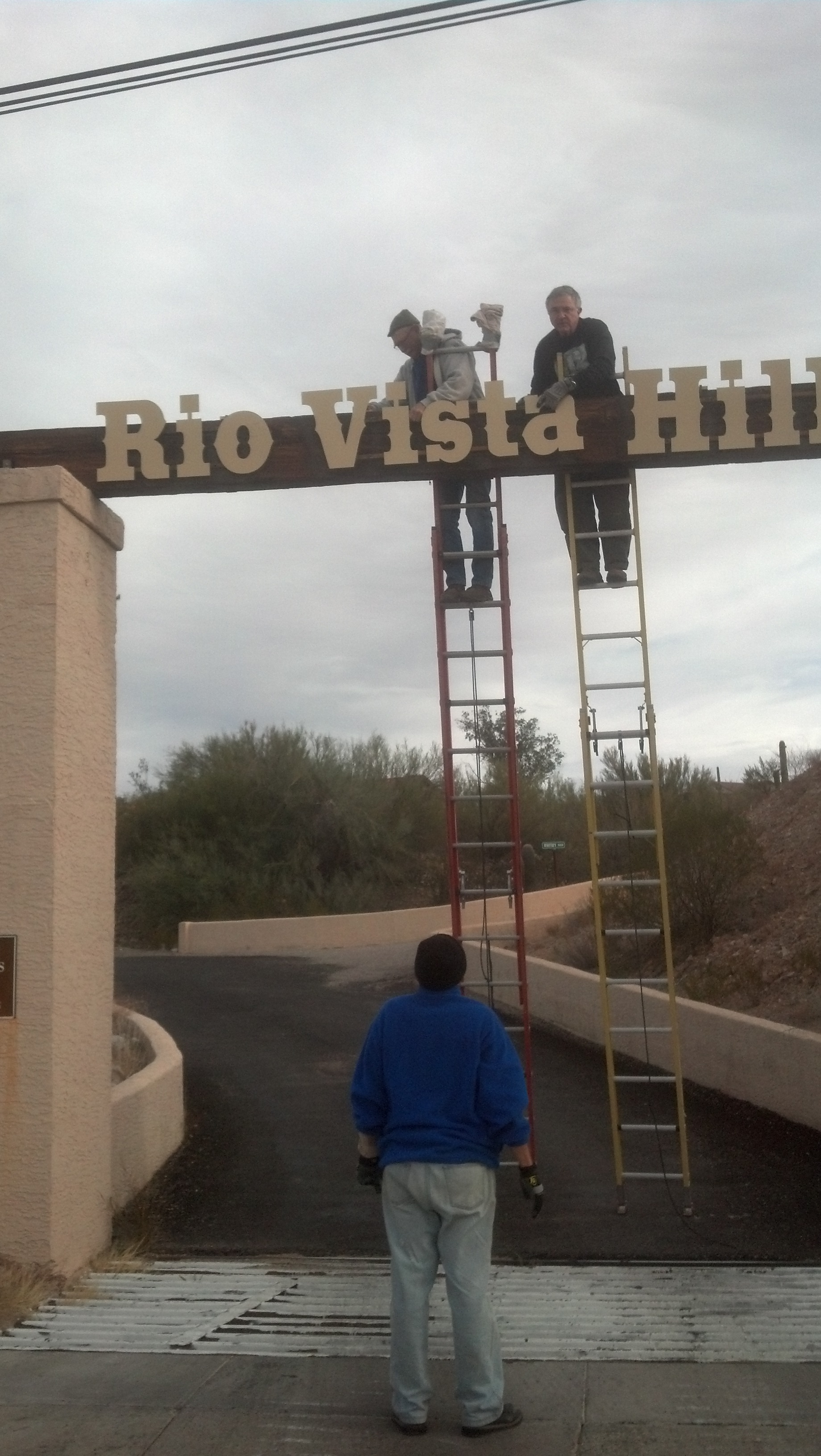 Where were your illustrious board and a few brave volunteers, right after Christmas? Installing the beautiful, new, Western-themed lettering atop the main entrance at RVH. A big thank you to all who braved the cold to improve our roads and entrance!
